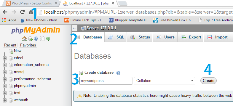 Before installing WordPress on XAMPP you have to create a database on MySQL through PHPMyAdmin. Without creating a database you can’t install WordPress. The database is used to store the information about the WordPress plugin.